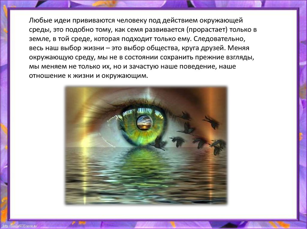 Любые идеи прививаются человеку под действием окружающейсреды, это подобно тому, как семя развивается (прорастает) только в
