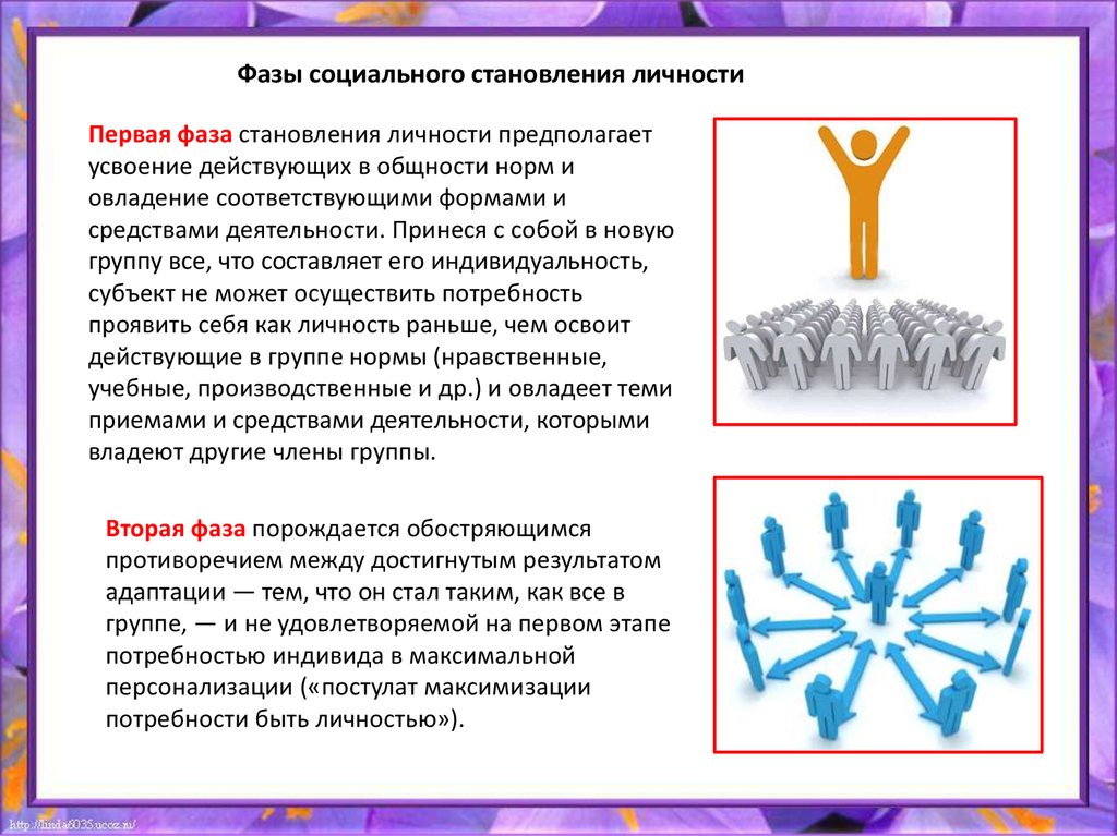 Фазы социального становления личностиПервая фаза становления личности предполагает