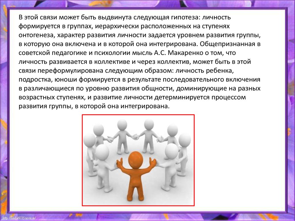 онтогенеза, характер развития личности задается уровнем развития группы,