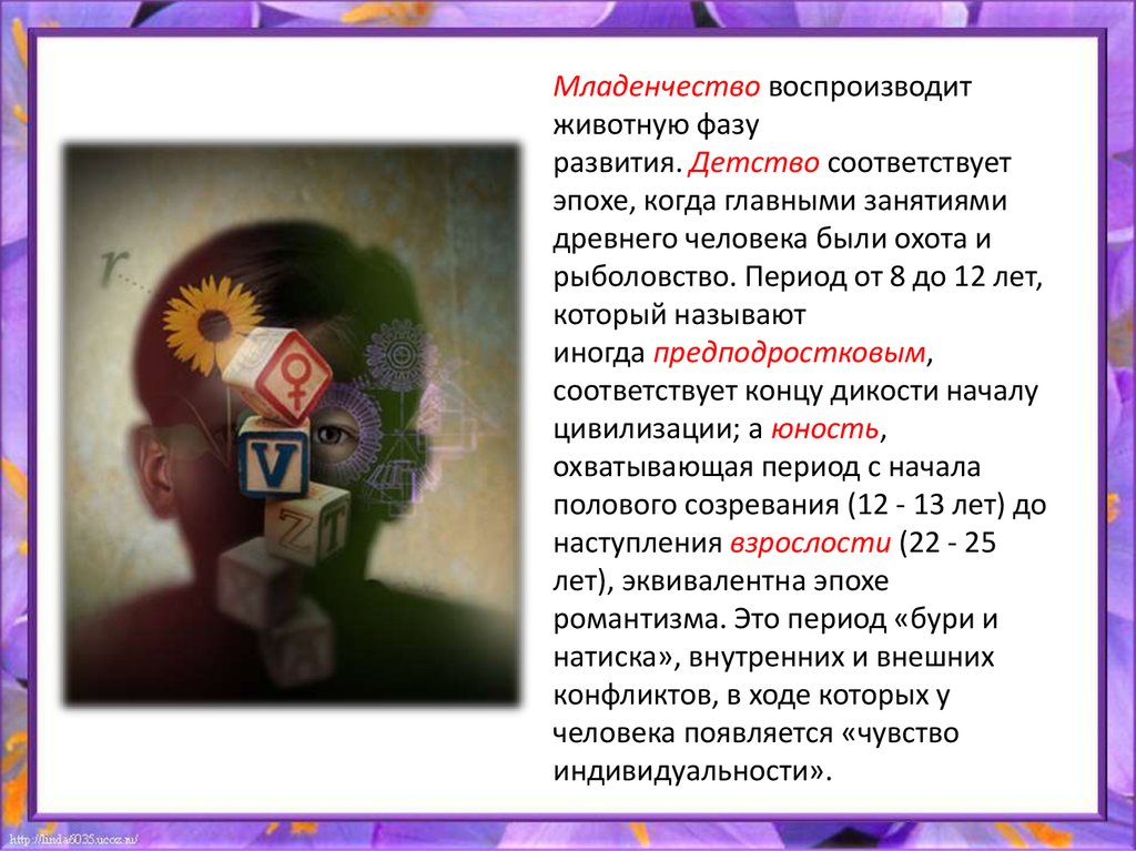 Биогенетическая теория обращает основное внимание на биологическиедетерминанты развития, из которых выводятся или с которыми
