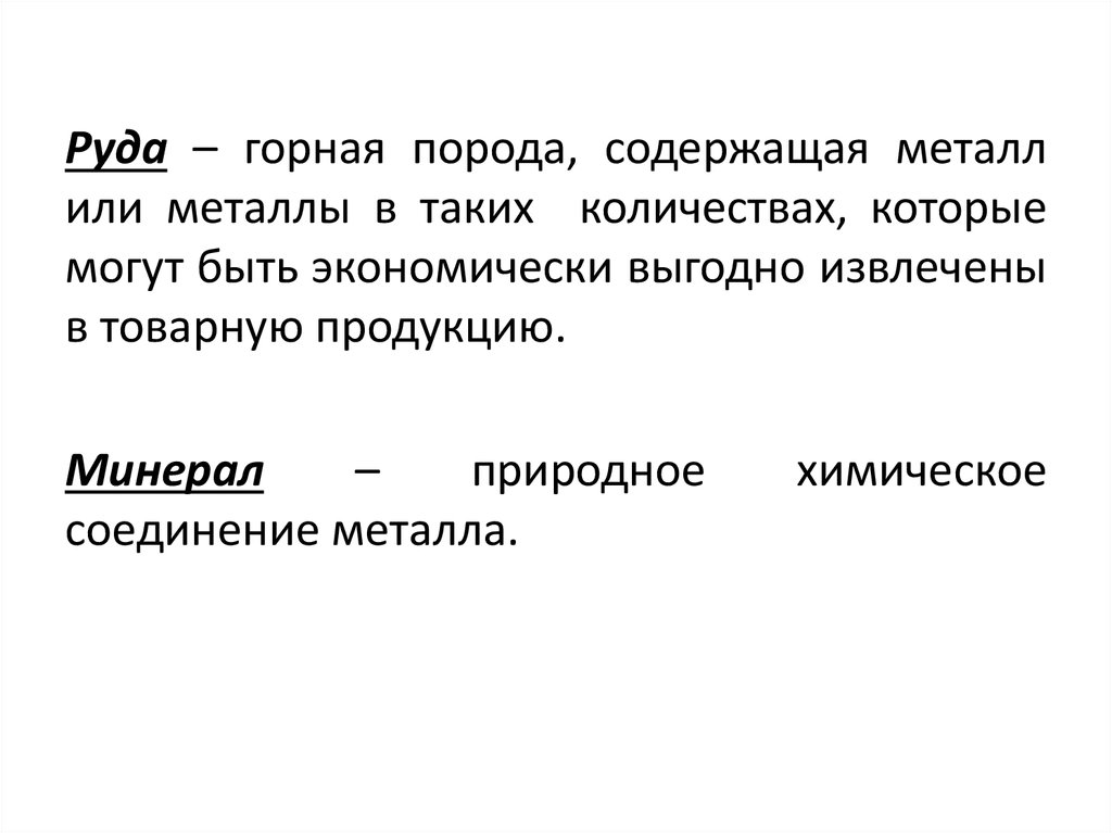 Руда – горная порода, содержащая металлили металлы в таких количествах, которые