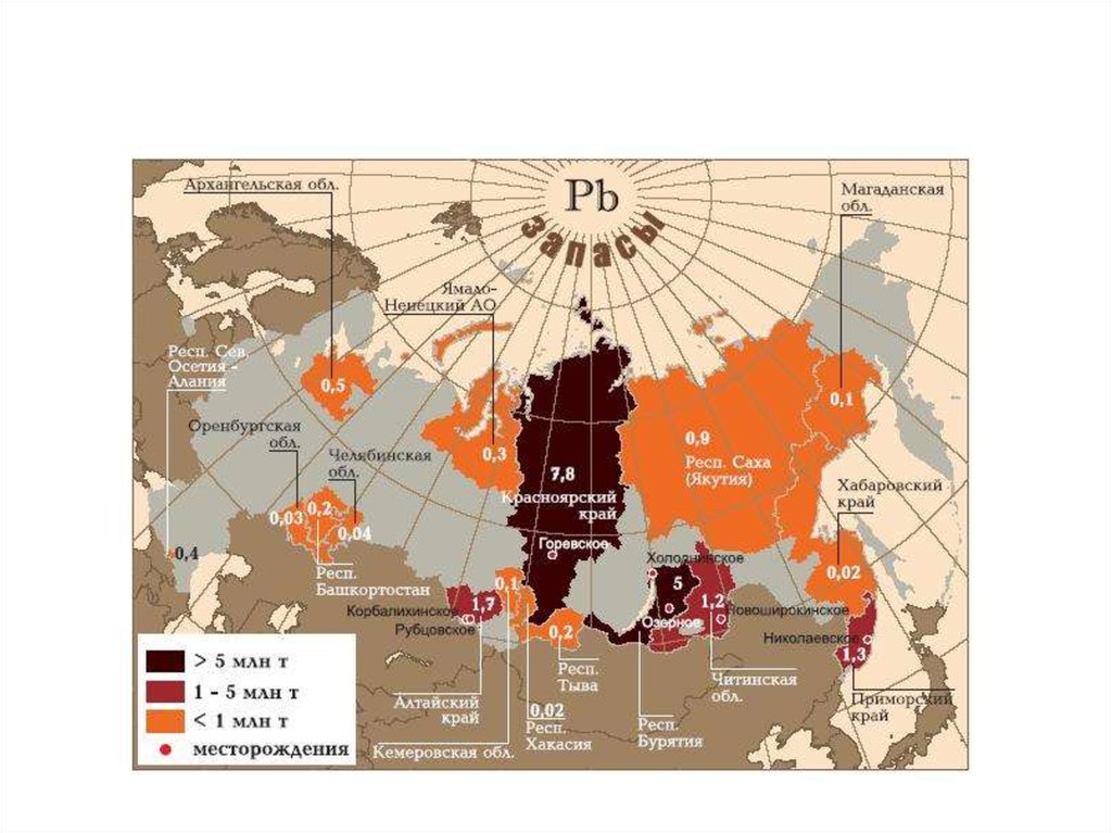 43. Запасы на месторождениях свинца в 2012 году, тыс.тонн *