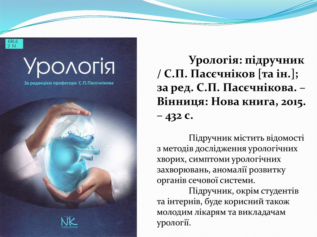 Урологія: підручник/ С.П. Пасєчніков [та ін.];