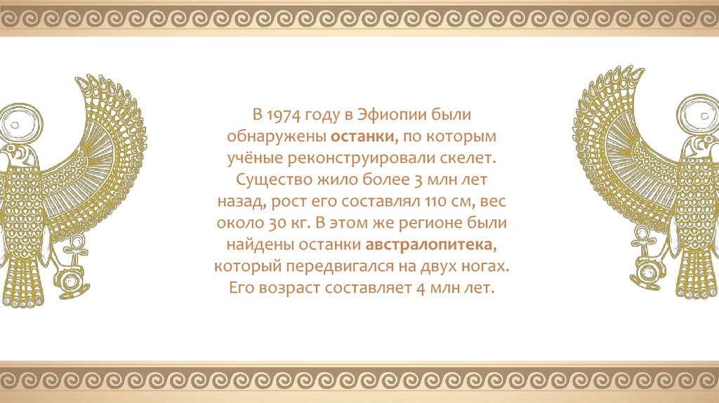 В 1974 году в Эфиопии былиобнаружены останки, по которым