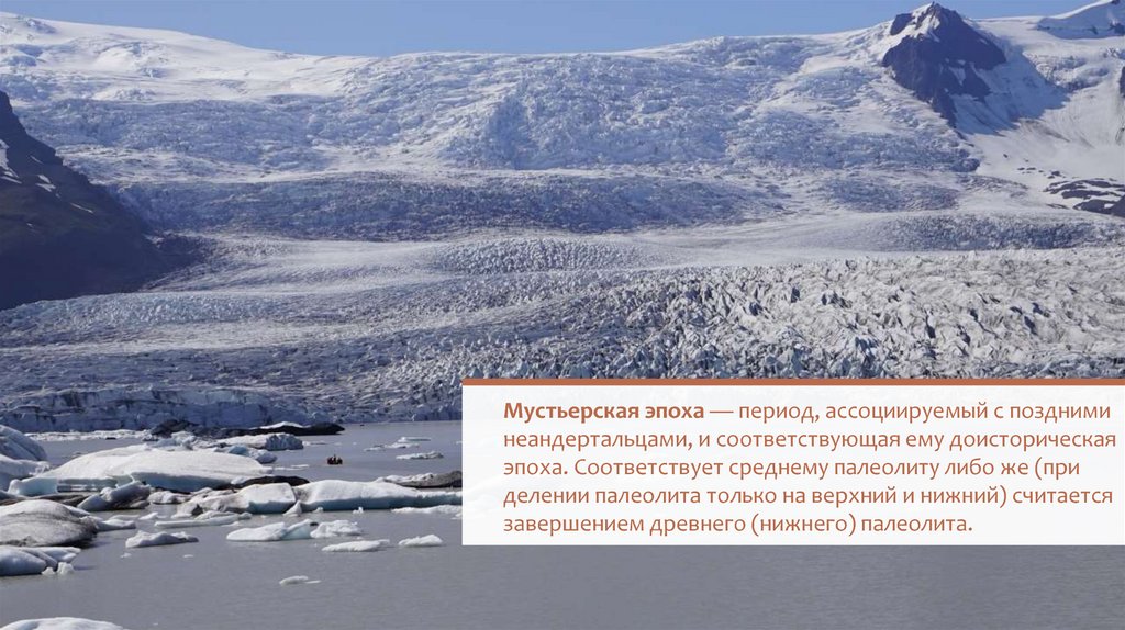 Мустьерская эпоха — период, ассоциируемый с поздниминеандертальцами, и соответствующая ему доисторическая