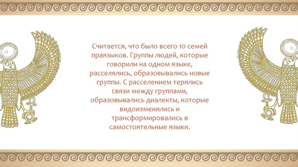 Считается, что было всего 10 семейпраязыков. Группы людей, которые
