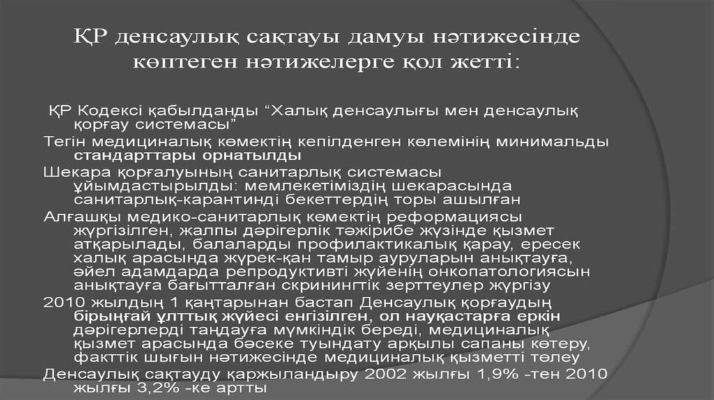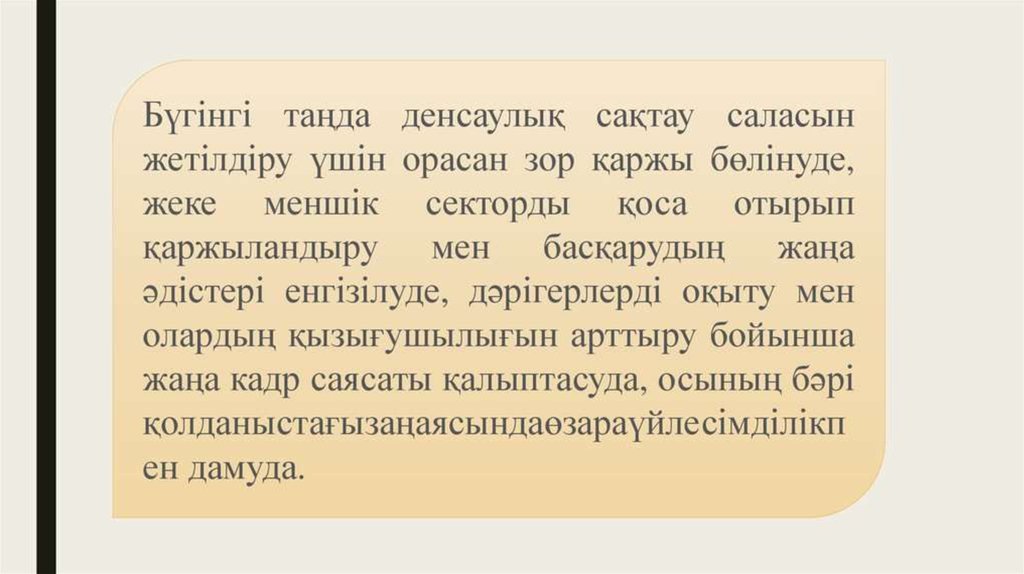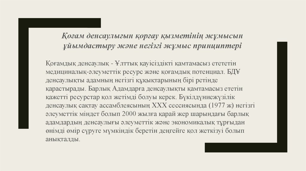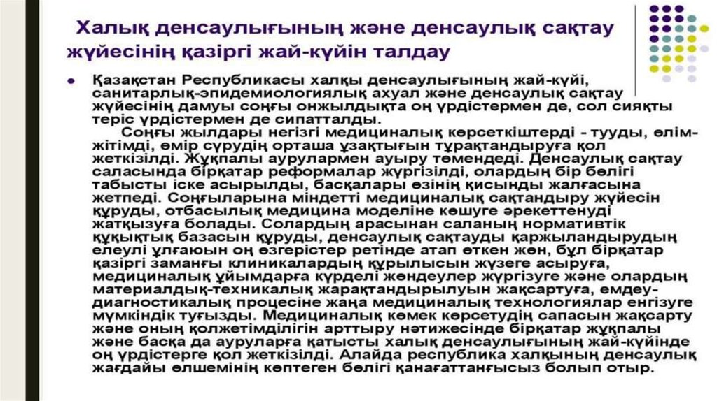 ■ Қазақстанда қазіргі кезеңді денсаулық сақтаудыұйымдастыру сферасында қазіргі принциптермен