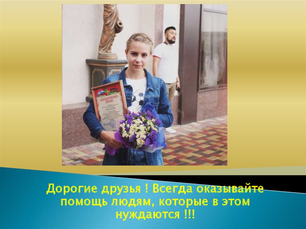 Дорогие друзья ! Всегда оказывайтепомощь людям, которые в этом
