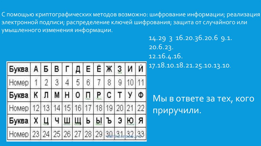 больше лет, чем кодам и шифрованию. Например, сообщение может быть