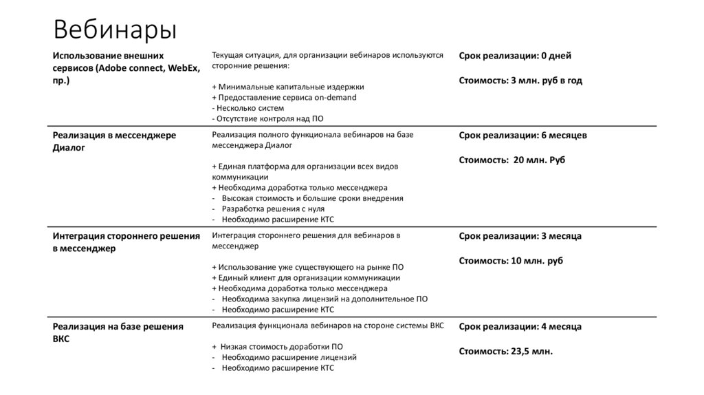 Реализация функционала вебинаров на стороне системы ВКС