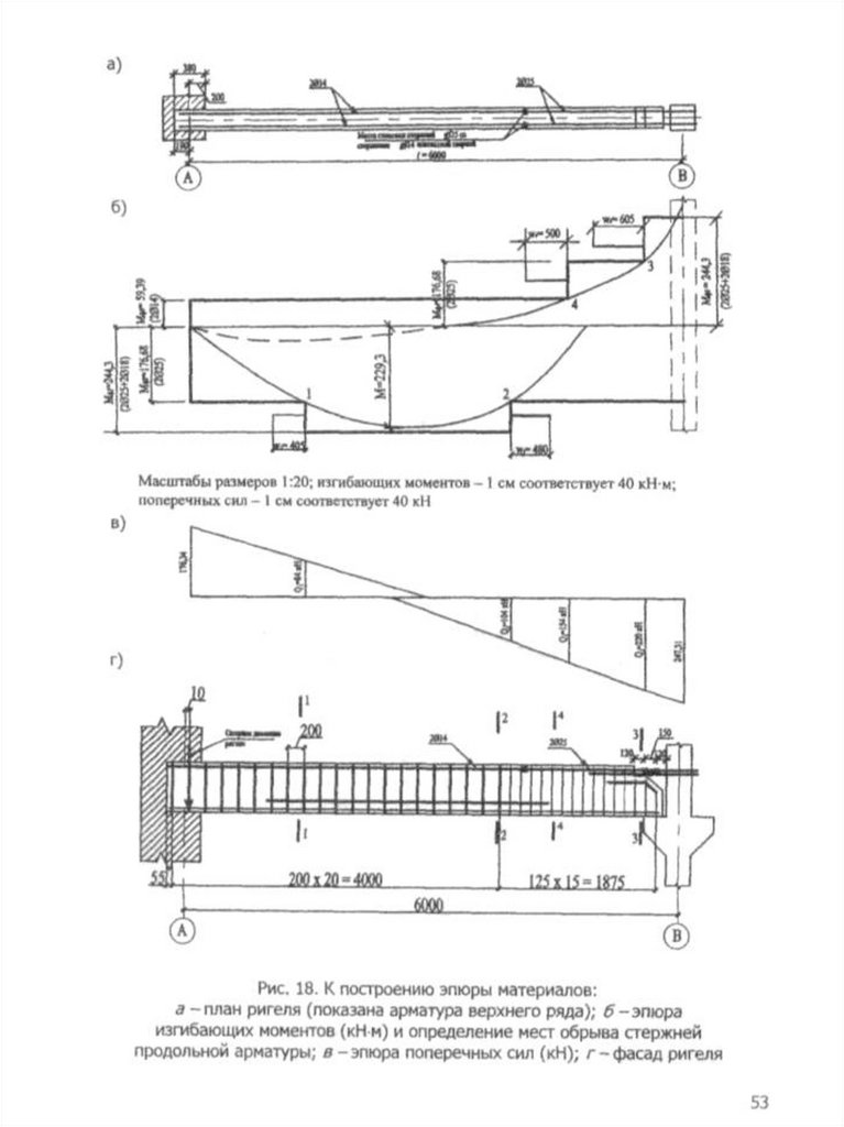б — схема армирования балки;