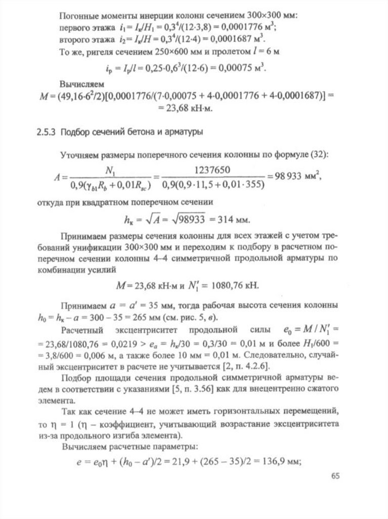 Пример расчета железобетонных конструкций многоэтажного промышленного здания