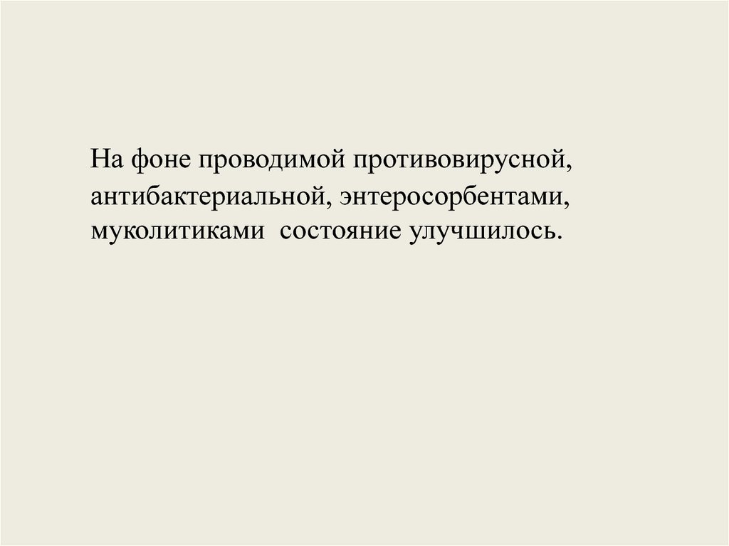 На фоне проводимой противовирусной,антибактериальной, энтеросорбентами,
