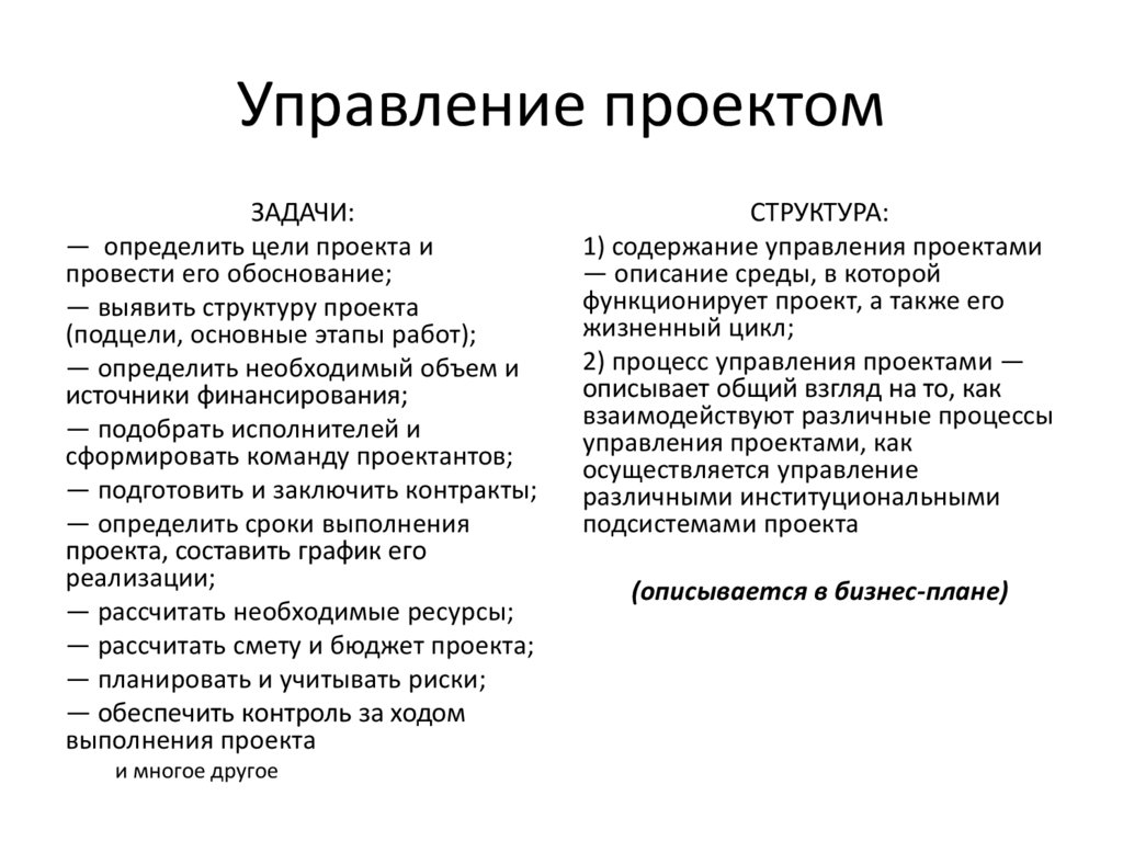 1) содержание управления проектами