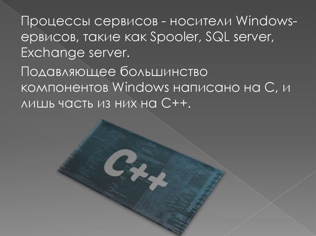 Процессы сервисов - носители Windowsервисов, такие как Spooler, SQL server,Exchange server.