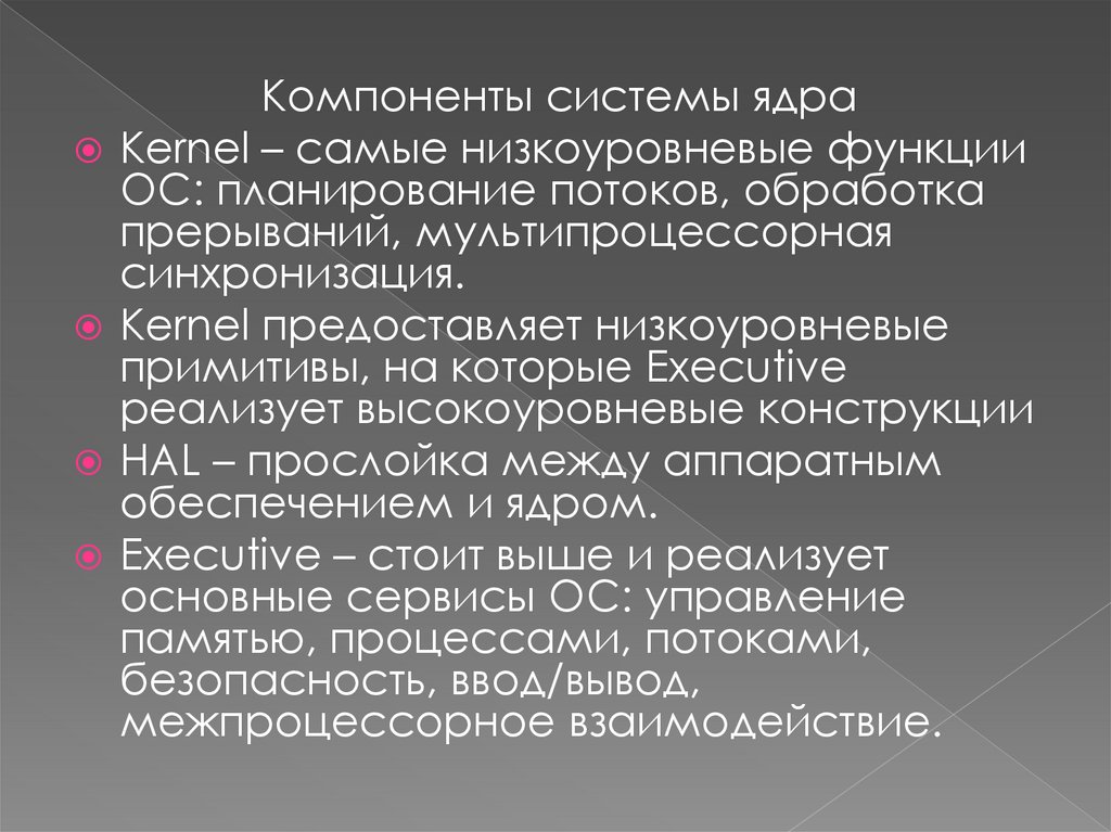 Компоненты системы ядраKernel – самые низкоуровневые функции