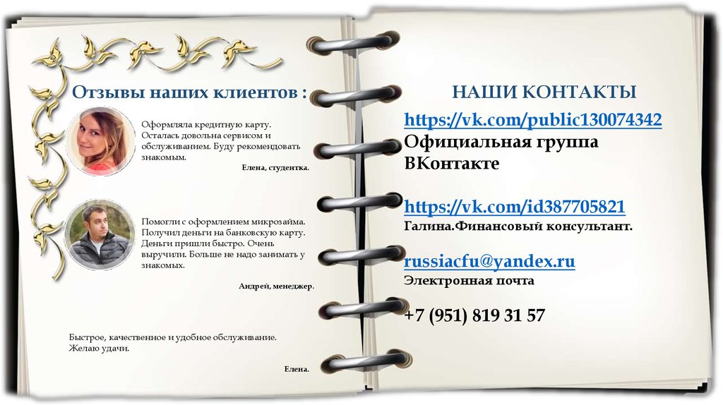Отзывы наших клиентов :Оформляла кредитную карту.