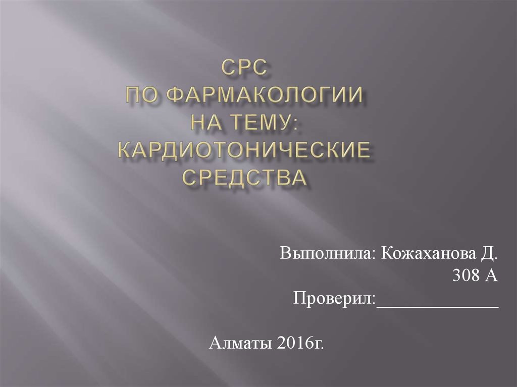 1. СРС по фармакологии на тему: Кардиотонические средства