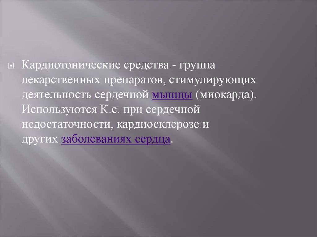 Кардиотонические средства - группалекарственных препаратов, стимулирующих