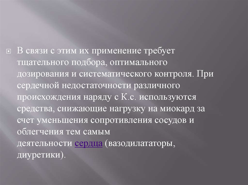 Используются К.с. при сердечной