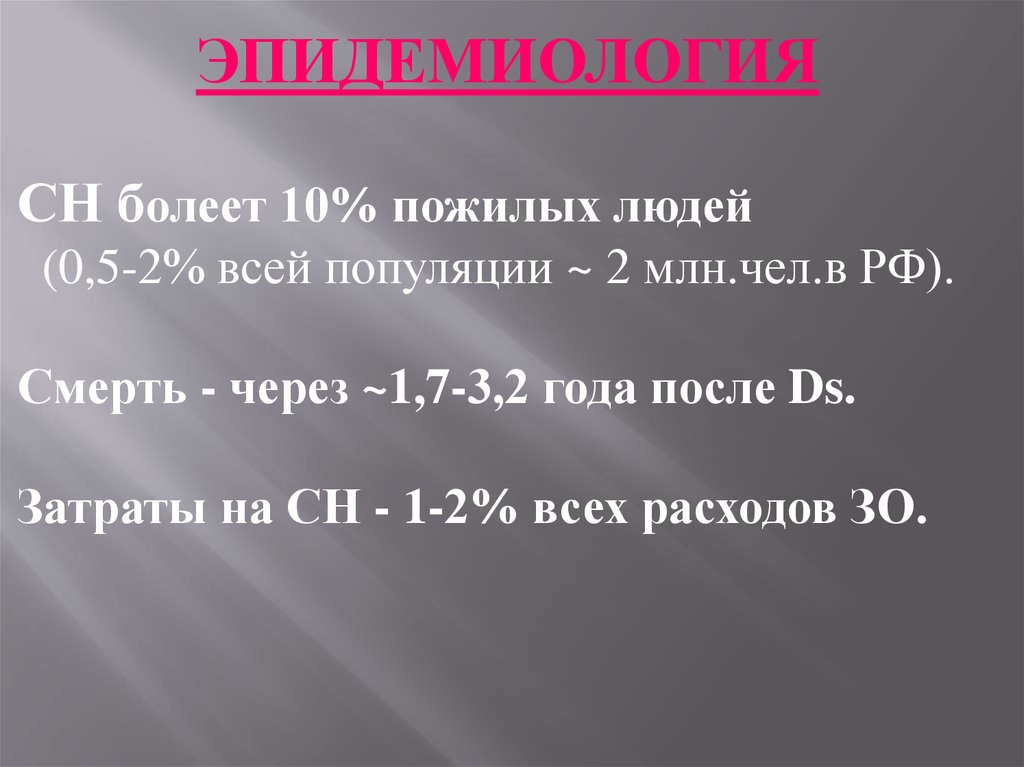 ЭПИДЕМИОЛОГИЯСН болеет 10% пожилых людей