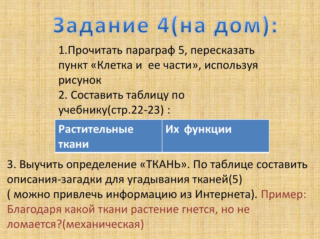 3. Выучить определение «ТКАНЬ». По таблице составить