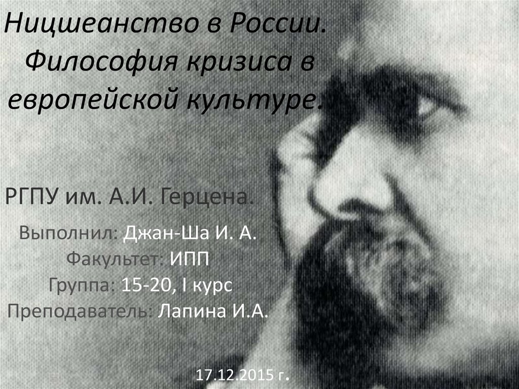 1. Ницшеанство в России. Философия кризиса в европейской культуре.