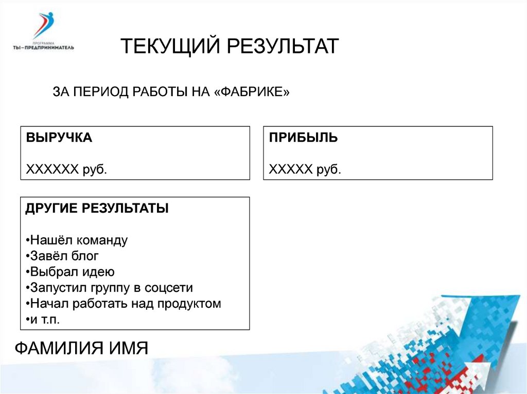 ТЕКУЩИЙ РЕЗУЛЬТАТЗА ПЕРИОД РАБОТЫ НА «ФАБРИКЕ»