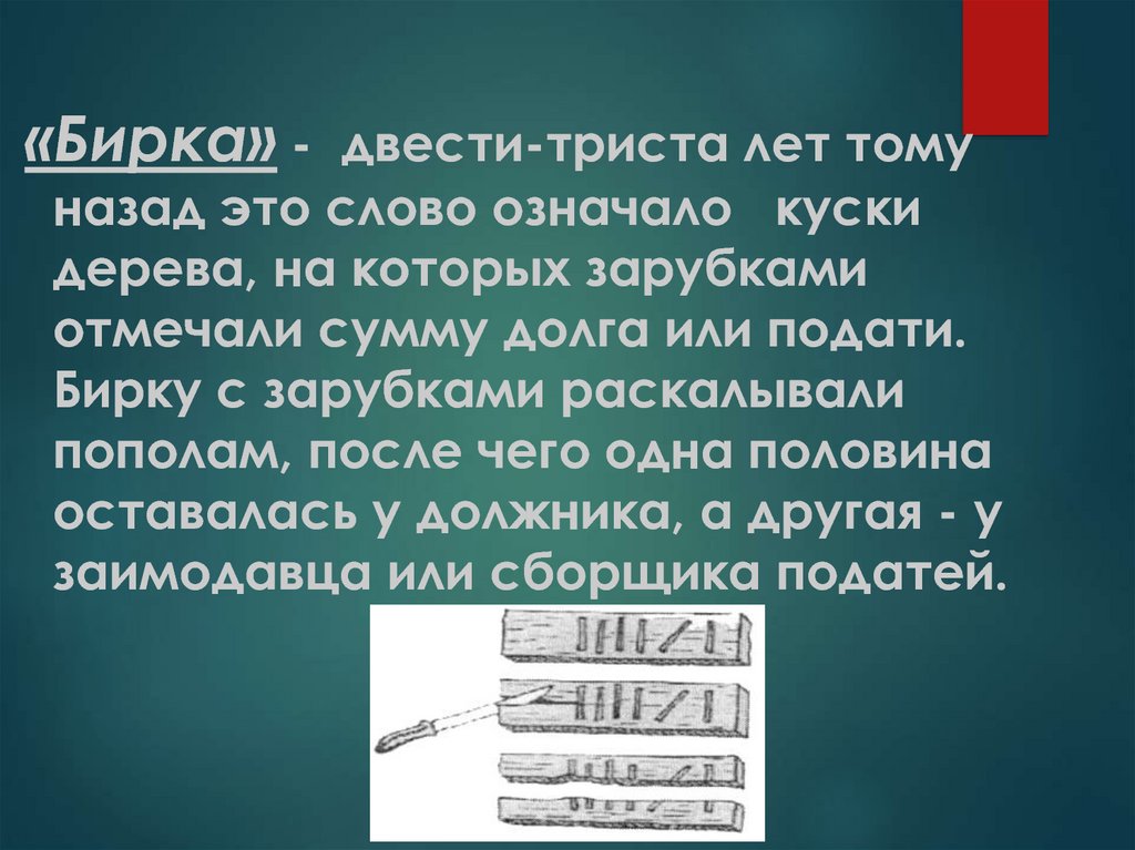 «Бирка» - двести-триста лет томуназад это слово означало куски
