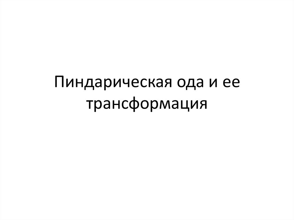1. Пиндарическая ода и ее трансформация