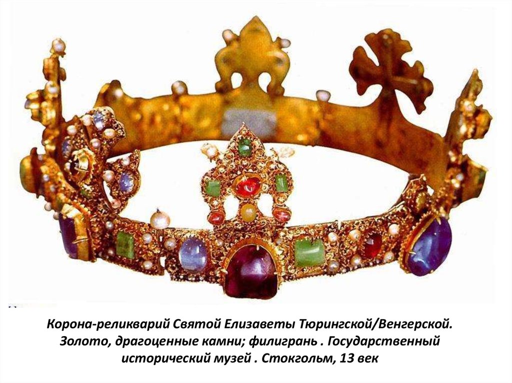 Корона-реликварий Святой Елизаветы Тюрингской/Венгерской.Золото, драгоценные камни; филигрань . Государственный