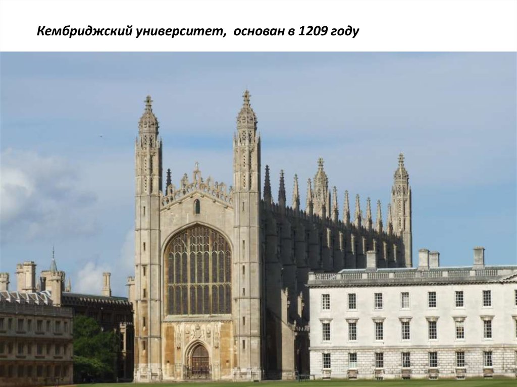Кембриджский университет, основан в 1209 году10.
