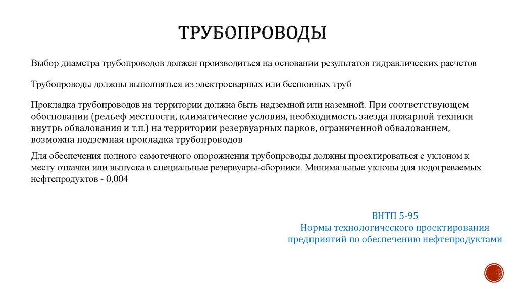 Выбор диаметра трубопроводов должен производиться на основании результатов гидравлических расчетовТрубопроводы должны выполняться из электросварных или бесшовных труб