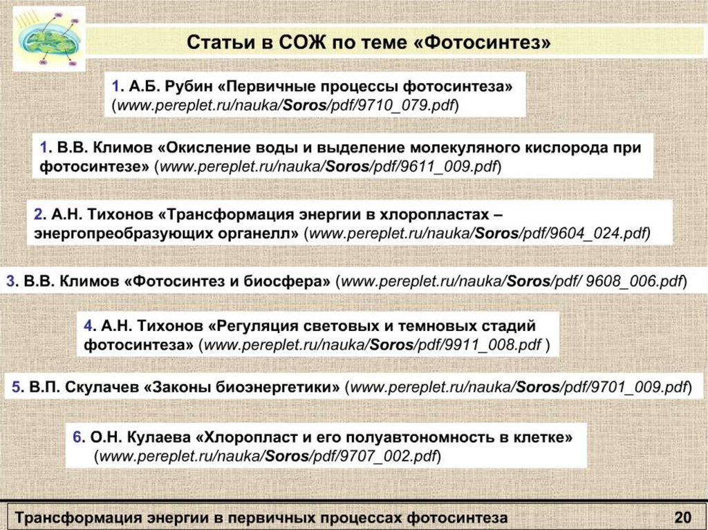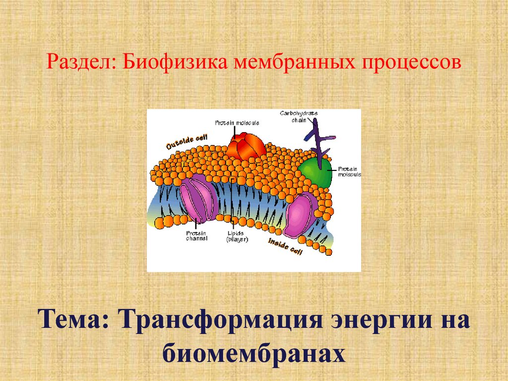 Раздел: Биофизика мембранных процессовТема: Трансформация энергии на