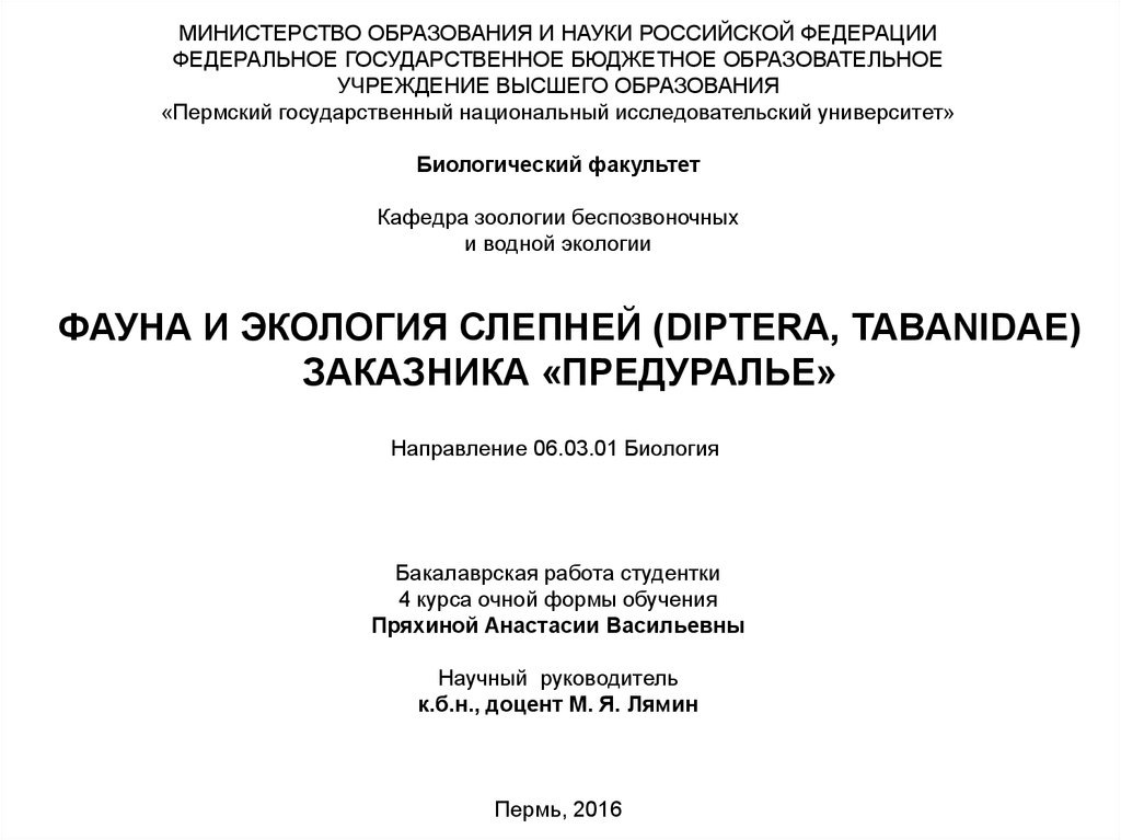 Фауна и экология слепней (diptera, tabanidae) заказника «Предуралье»
