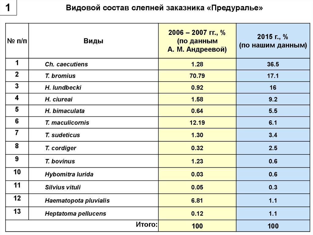 Видовой состав слепней насчитывает 13 видов и 6 родов с преобладание евро-сибирских