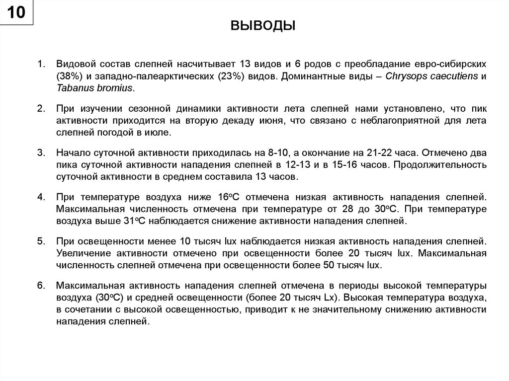 пика суточной активности нападения слепней в 12-13 и в 15-16 часов. Продолжительность