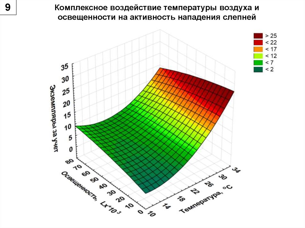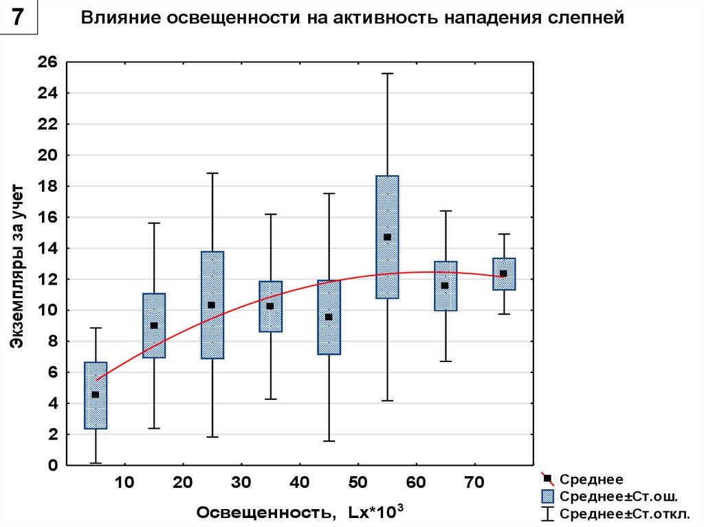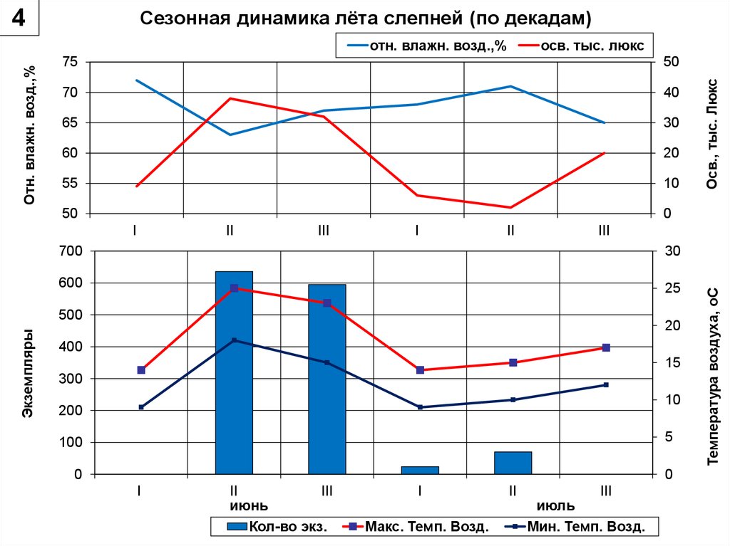 численность слепней отмечена при освещенности более 50 тысяч lux.