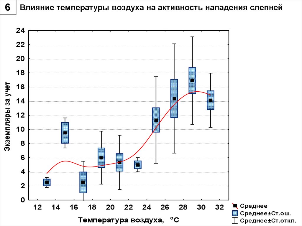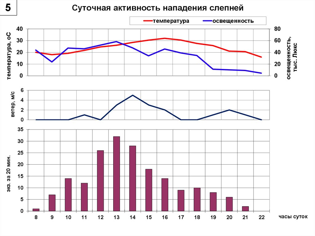 воздуха выше 31оС наблюдается снижение активности нападения слепней.