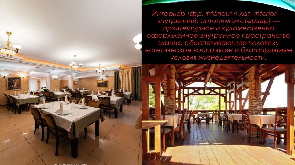 Интерье́р (фр. intérieur < лат. interior —внутренний, антоним экстерьер) —