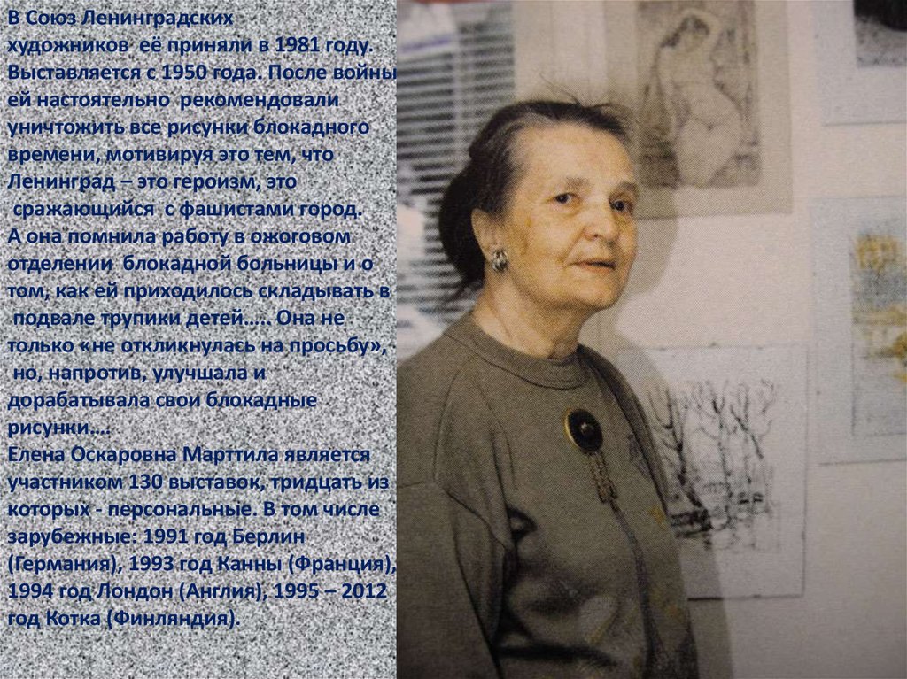 В Союз Ленинградскиххудожников её приняли в 1981 году.