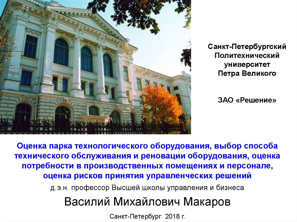 Оценка парка технологического оборудования, оценка потребности в производственных помещениях и персонале, оценка рисков