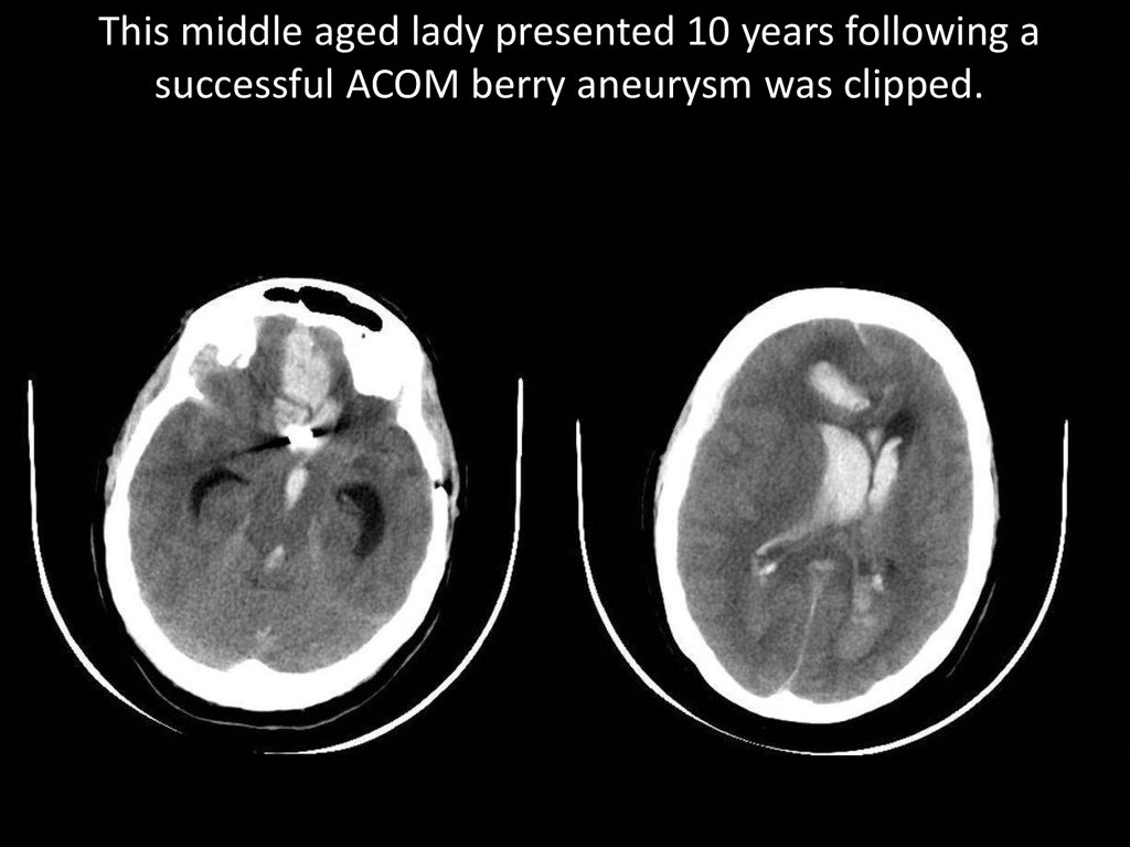 This middle aged lady presented 10 years following asuccessful ACOM berry aneurysm was clipped.