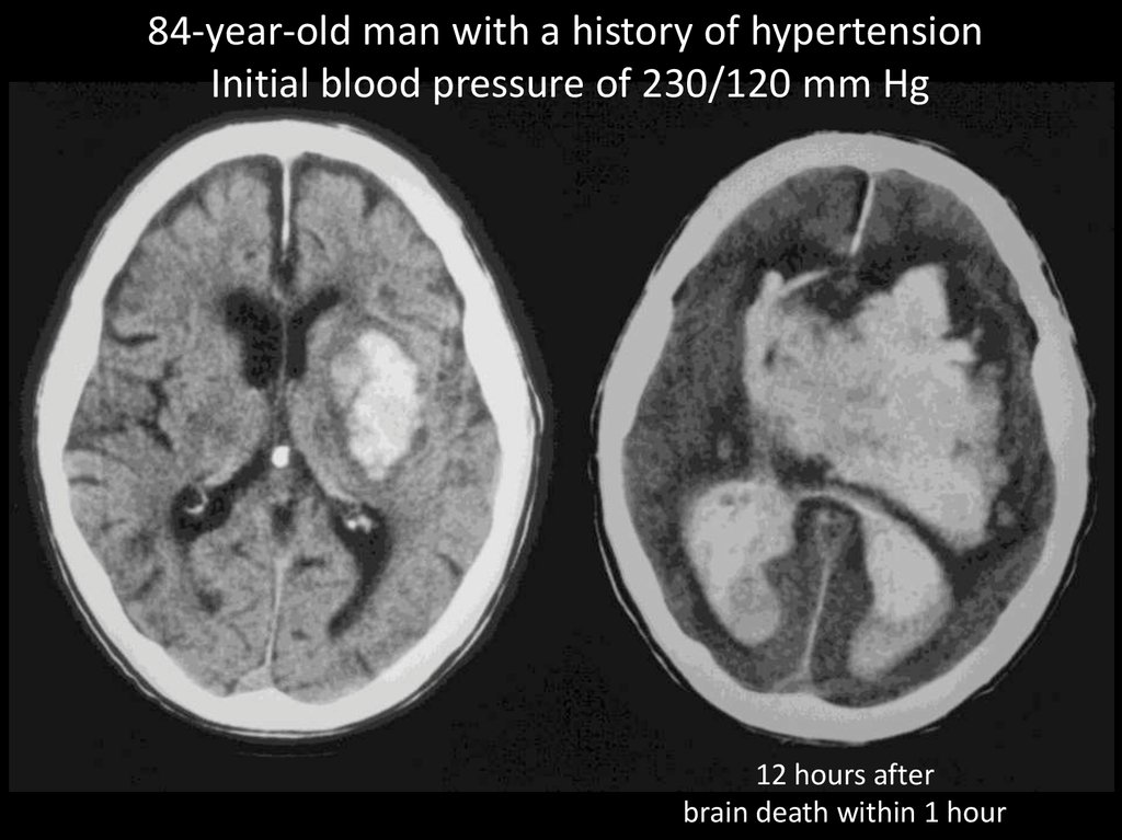 84-year-old man with a history of hypertensionInitial blood pressure of 230/120 mm Hg