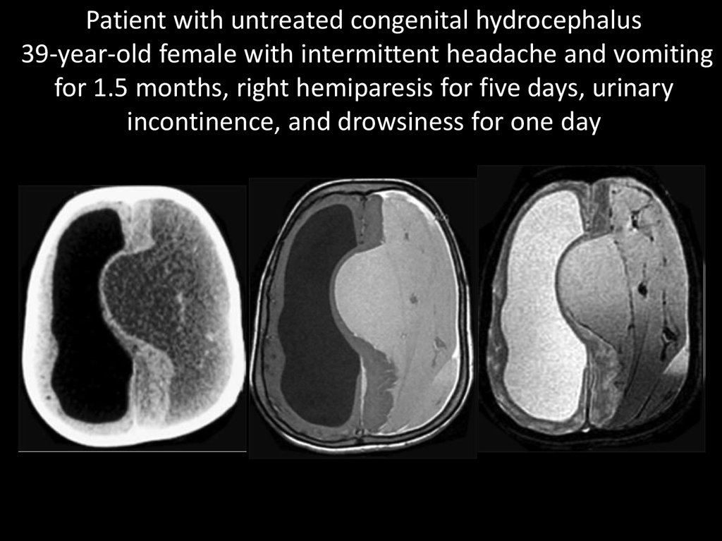 Patient with untreated congenital hydrocephalus39-year-old female with intermittent headache and vomiting