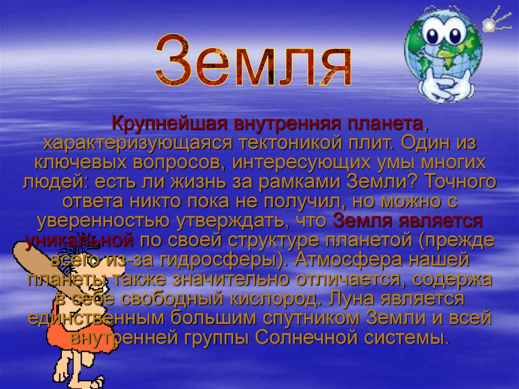 Крупнейшая внутренняя планета,характеризующаяся тектоникой плит. Один из