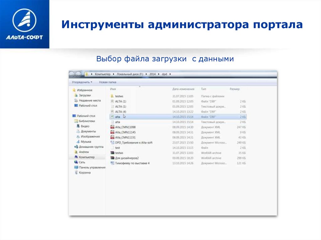 Инструменты администратора порталаВыбор файла загрузки с данными
