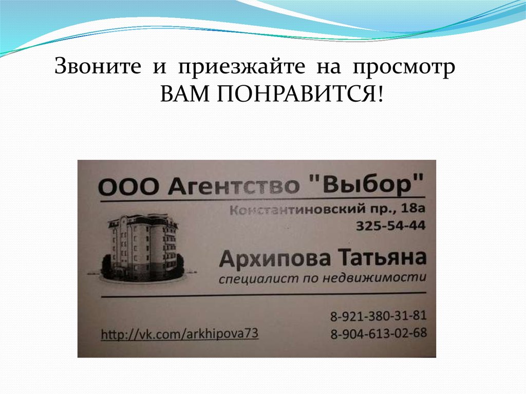 Звоните и приезжайте на просмотрВАМ ПОНРАВИТСЯ!