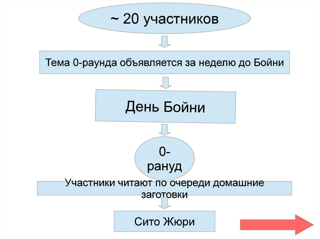 ~ 20 участниковТема 0-раунда объявляется за неделю до Бойни