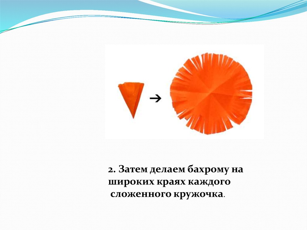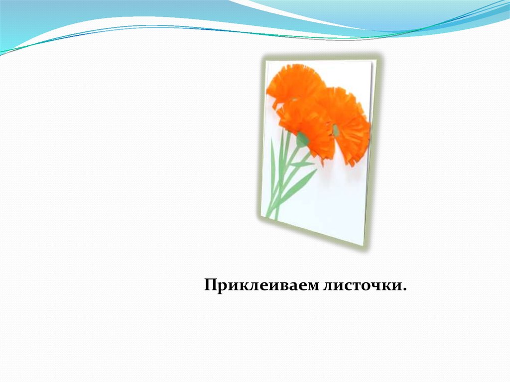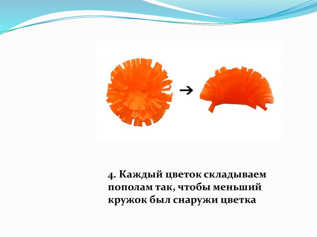 4. Каждый цветок складываемпополам так, чтобы меньший